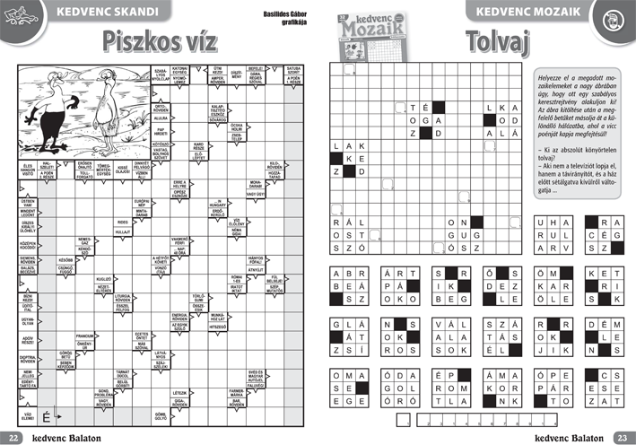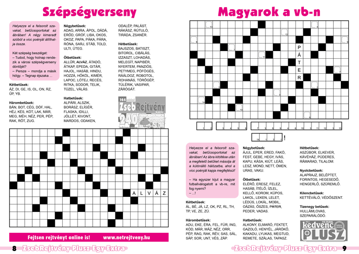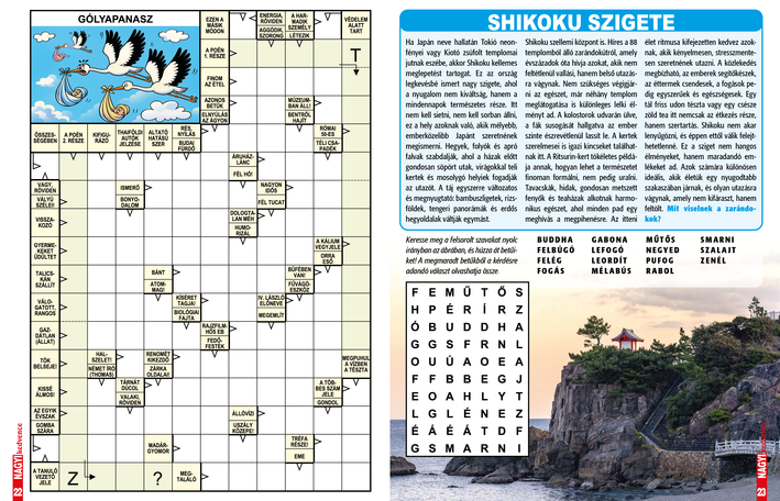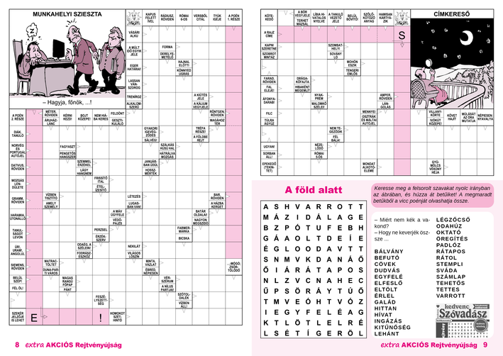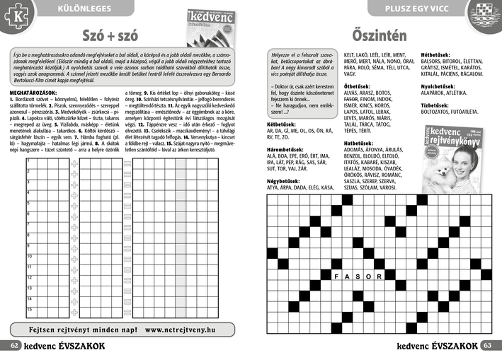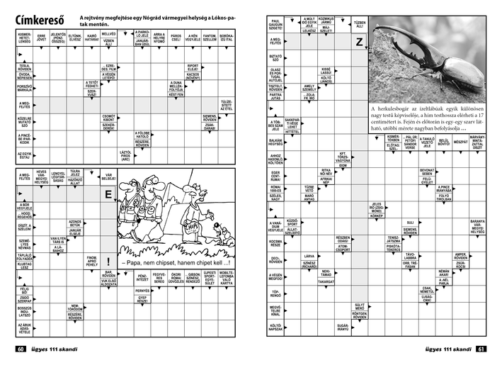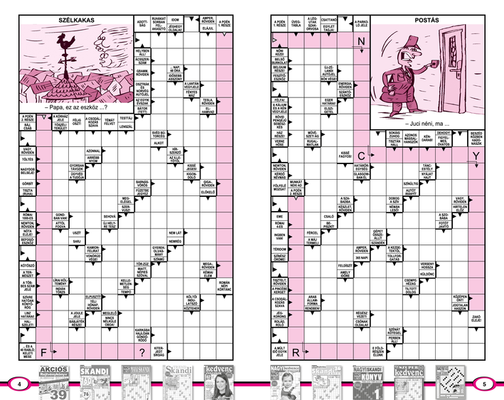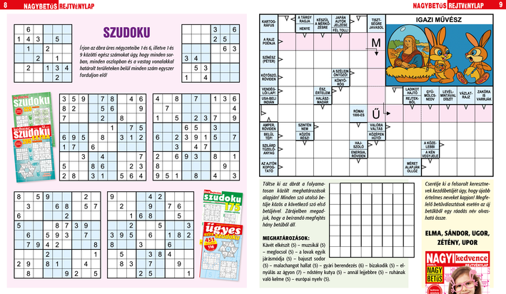 | Az Ügyes rejtvénymagazin a 90 rejtvény mellett érdekes olvasnivalókat is kínál hírességekről, filmekről, élővilágról, divatról, nagyvilágról és egészségről. Különleges, máshol nem fejthető rejtvénytípusokkal, keresse minden páros hét szerdáján!