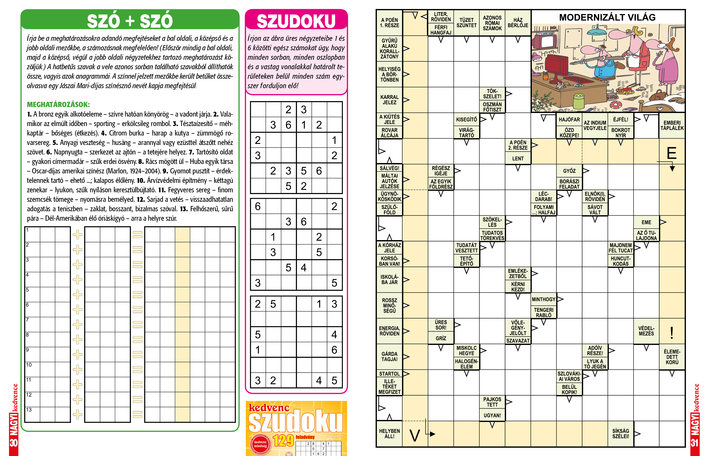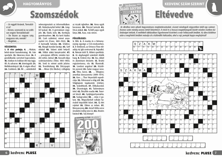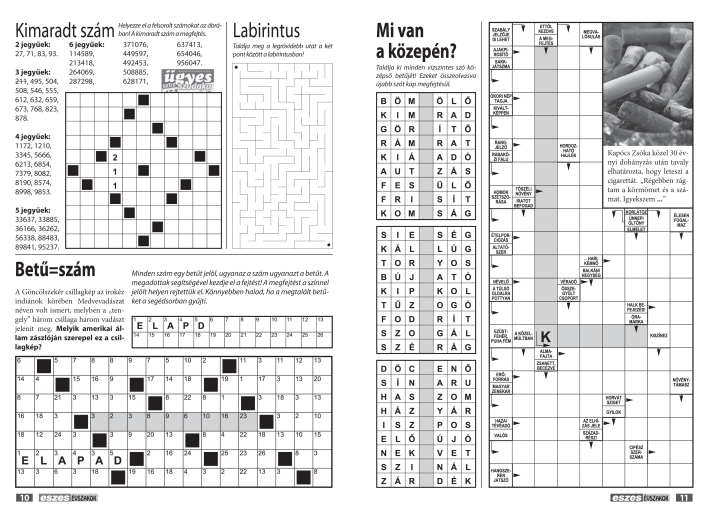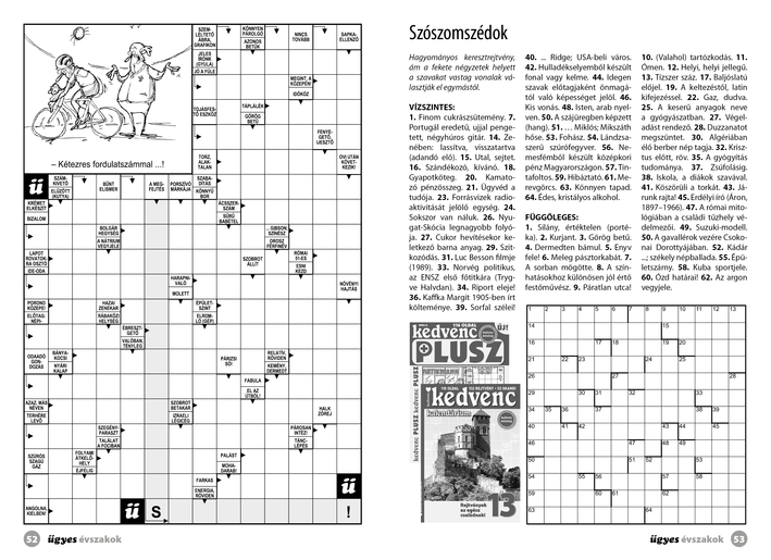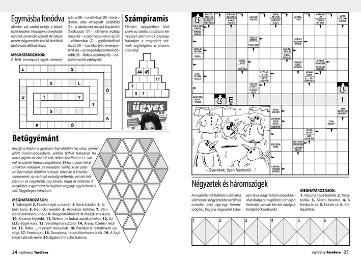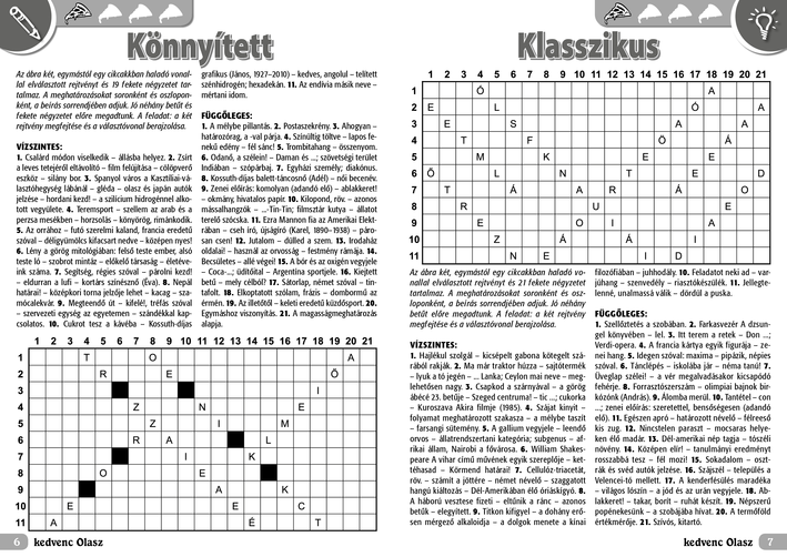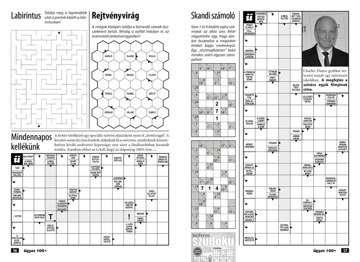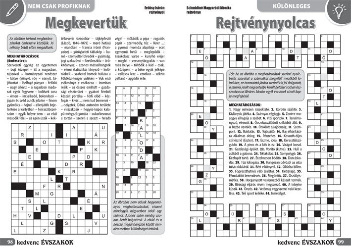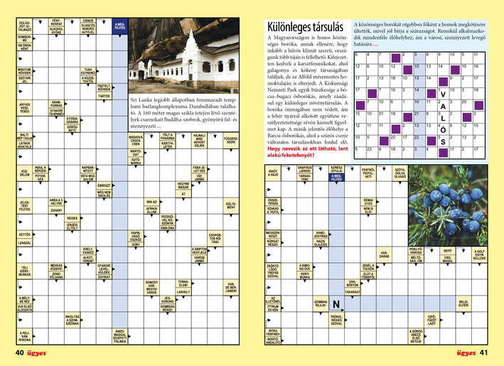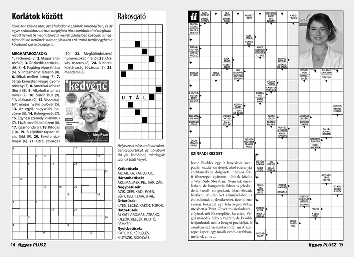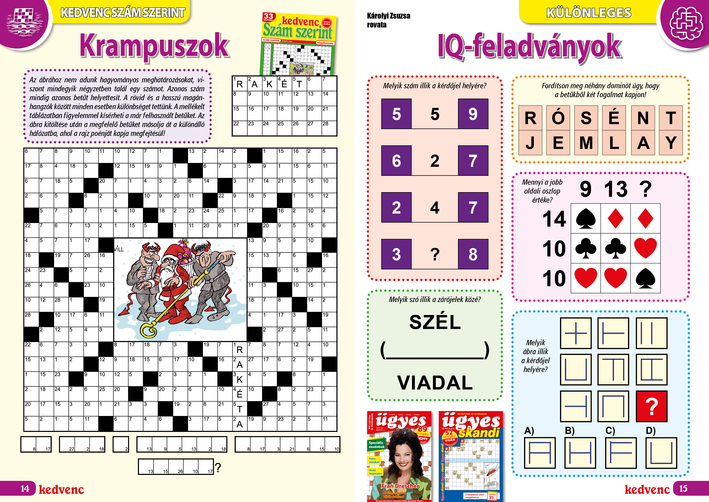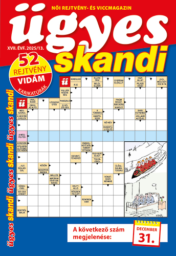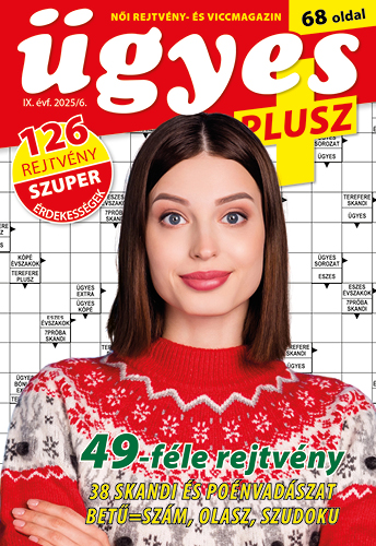 | Az Ügyes rejtvénymagazin a 90 rejtvény mellett érdekes olvasnivalókat is kínál hírességekről, filmekről, élővilágról, divatról, nagyvilágról és egészségről. Különleges, máshol nem fejthető rejtvénytípusokkal, keresse minden páros hét szerdáján!
