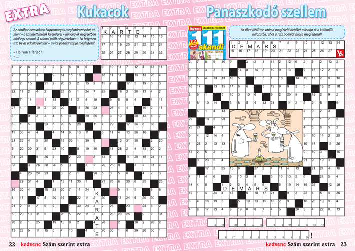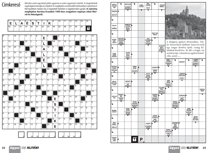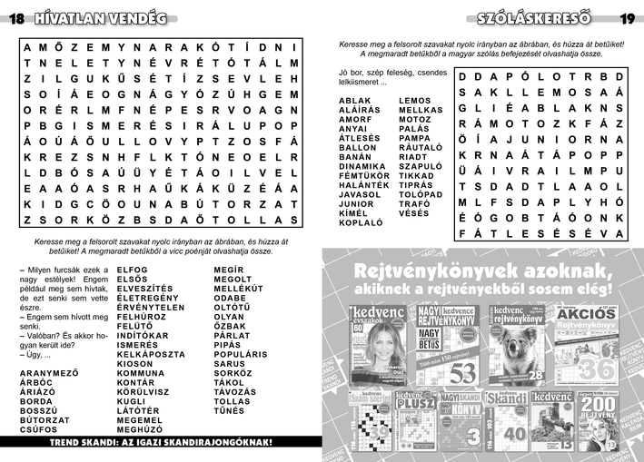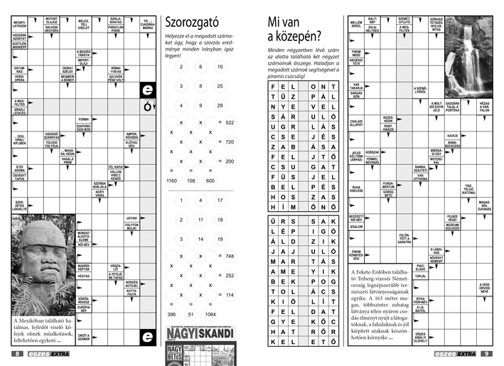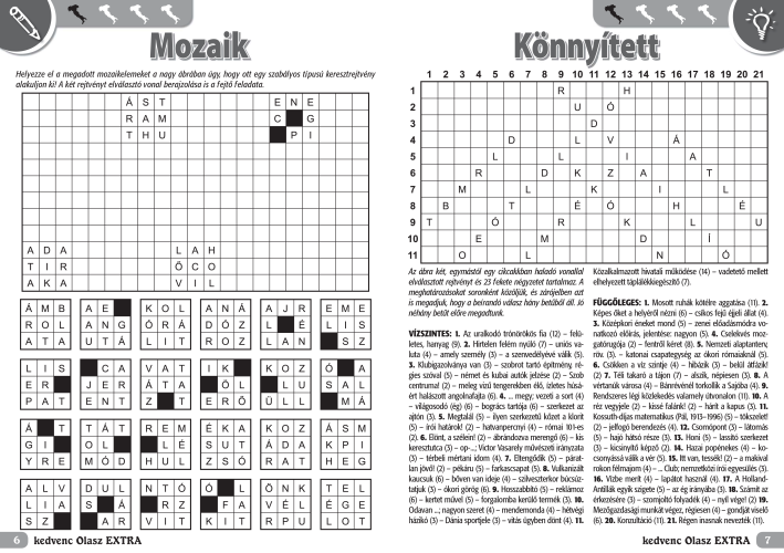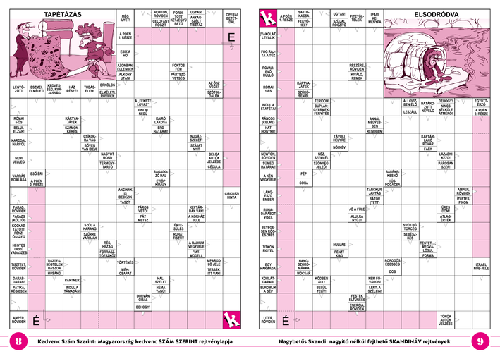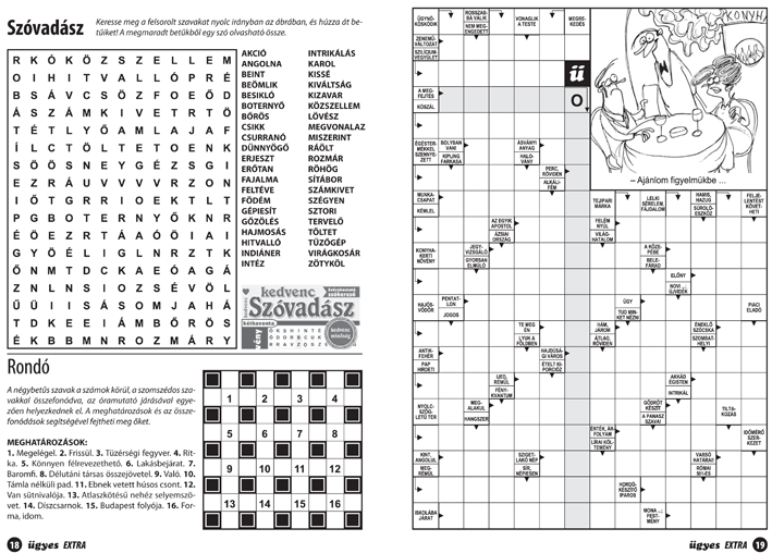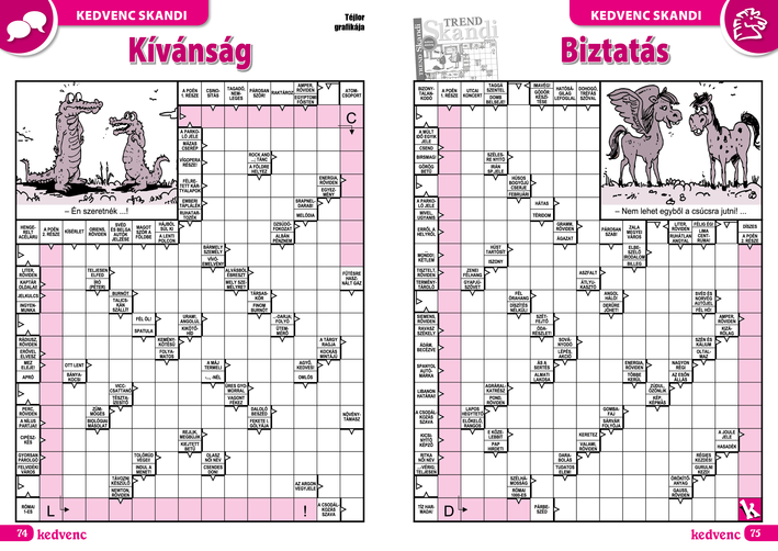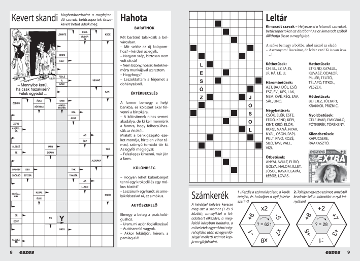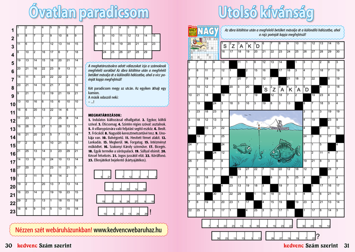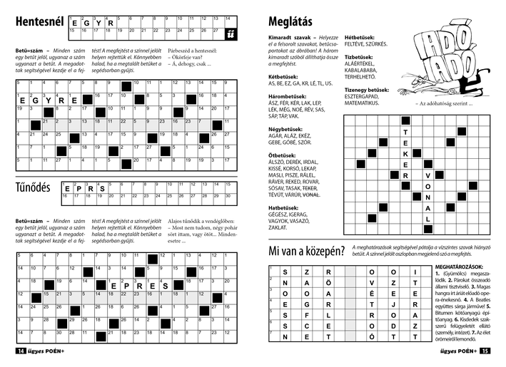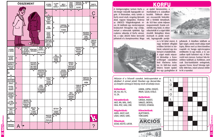 | Az Ügyes rejtvénymagazin a 90 rejtvény mellett érdekes olvasnivalókat is kínál hírességekről, filmekről, élővilágról, divatról, nagyvilágról és egészségről. Különleges, máshol nem fejthető rejtvénytípusokkal, keresse minden páros hét szerdáján!