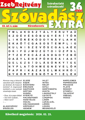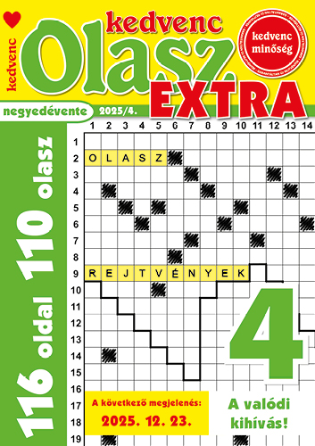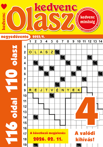 | | Témakör: | | | Megjelent: | 2025. november 26. (kéthetente); Megjelenési táblázat | | Terjedelem: | 52 oldal, B5 (168x238 mm) | | Ár: | | 415Ft |  |
